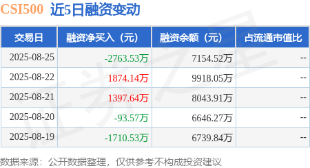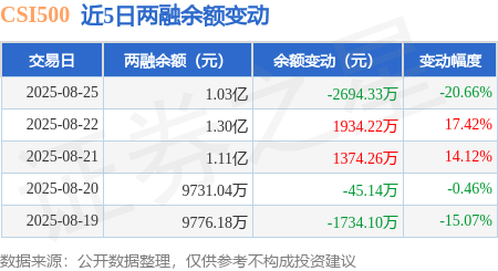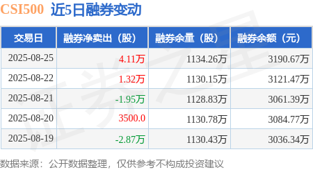 CSI500:8月25日融券卖出5.11万股,融资融券余额1.03亿元